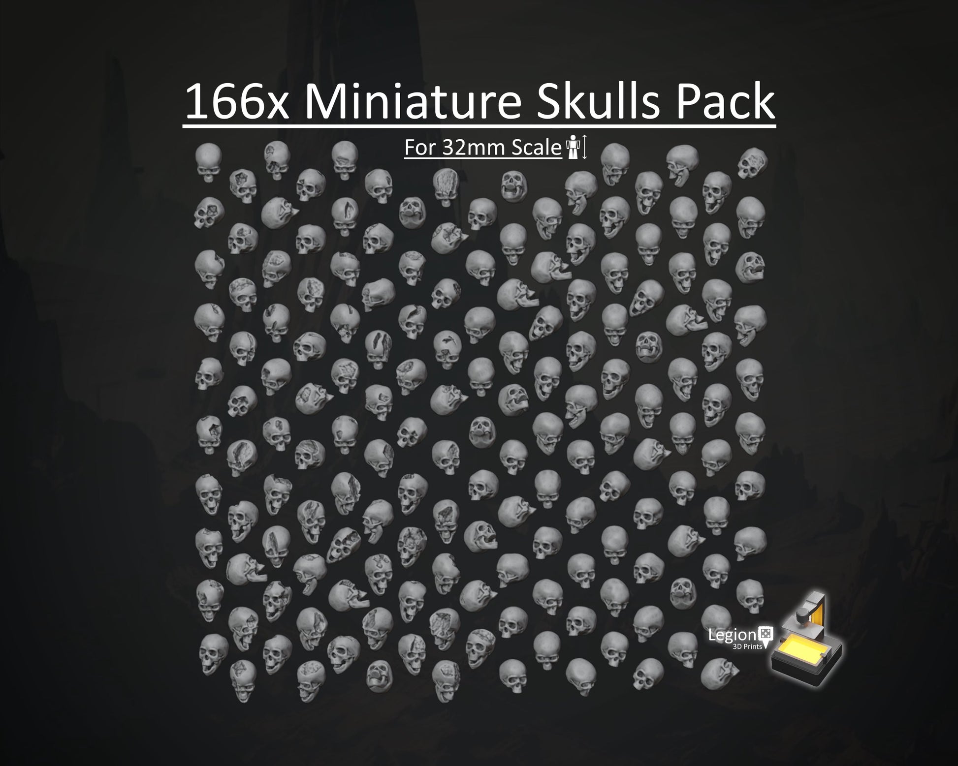 166x Skulls Pack for 32mm scale