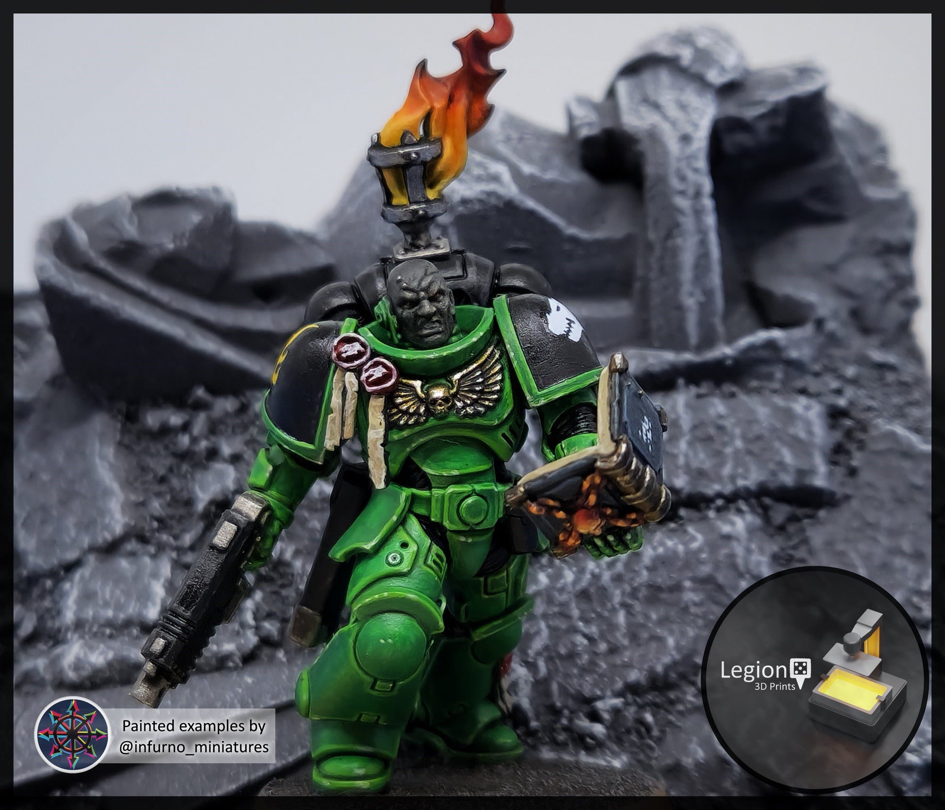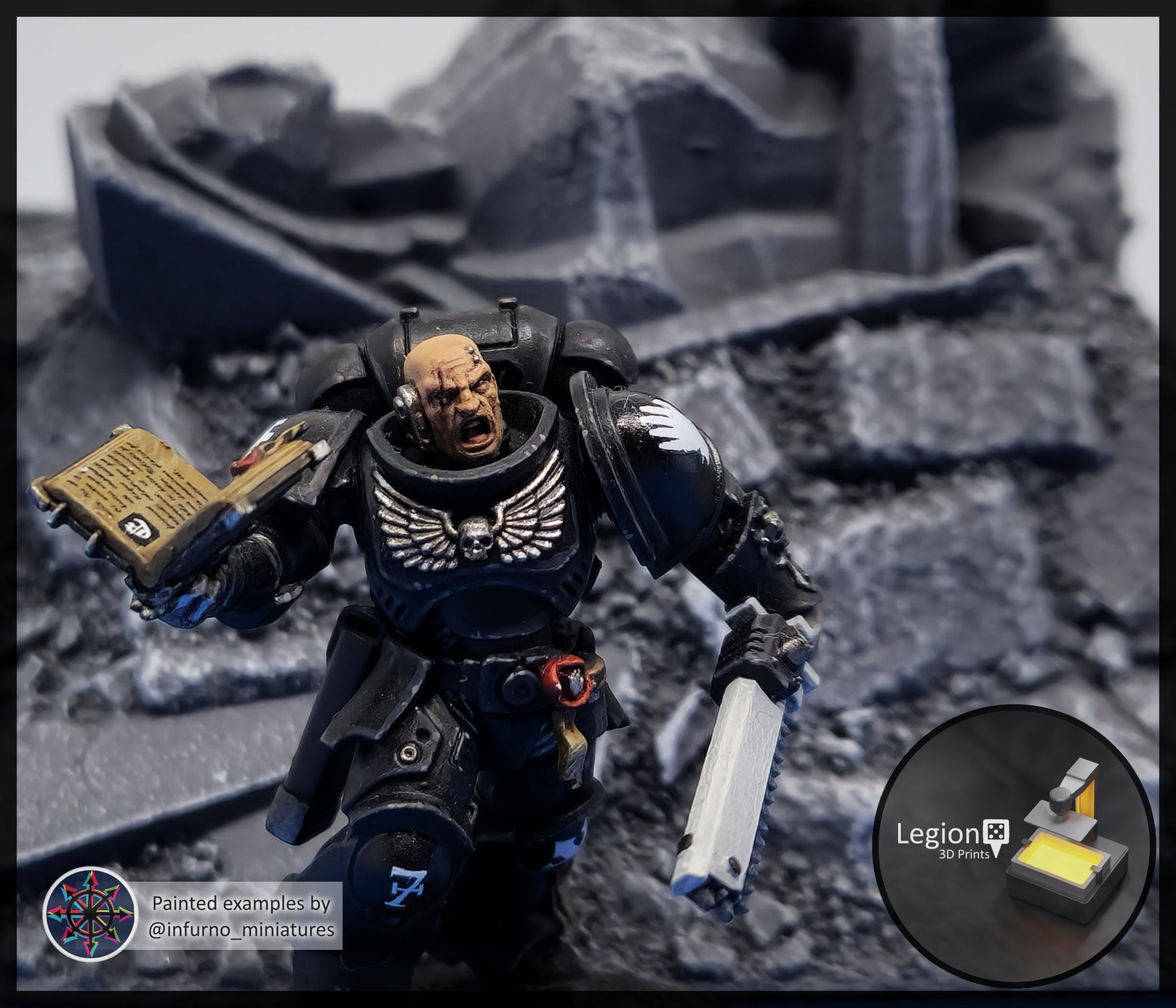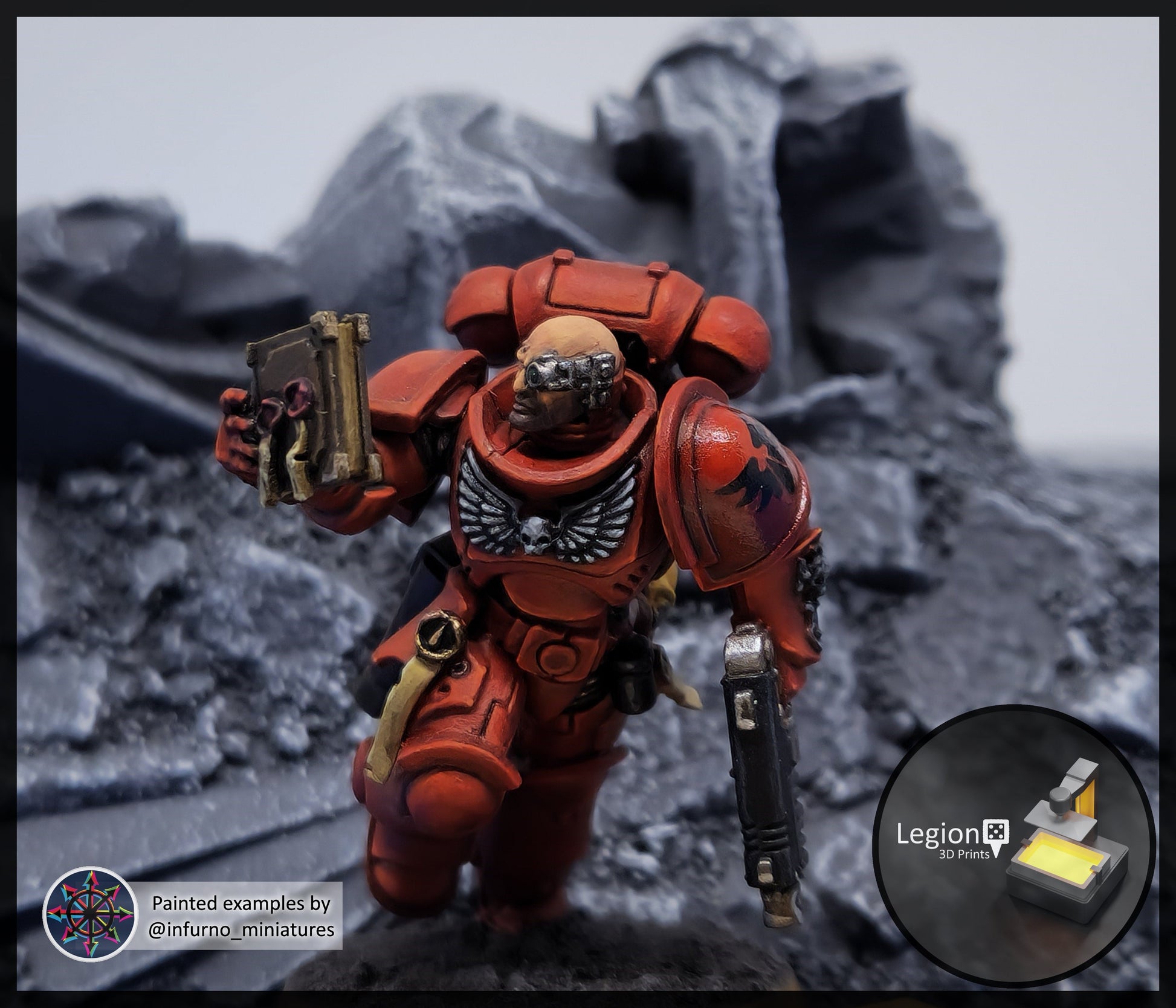 Painted examples of Blood Angel, Imperial Fist, Iron Hands, Raven Guard, Salamander, Black Templar, Ultramarine and White Scar by infurno_miniatures
