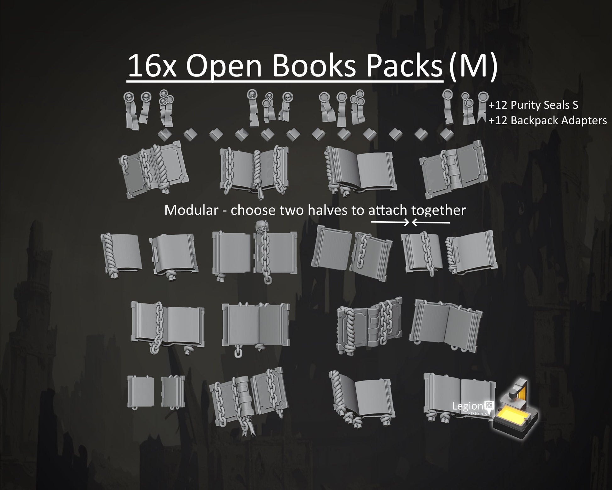 16x Modular Open Books Accessory Packs (M) - for Hobby Wargaming Model Bits - Fantasy AoS 30k Heresy