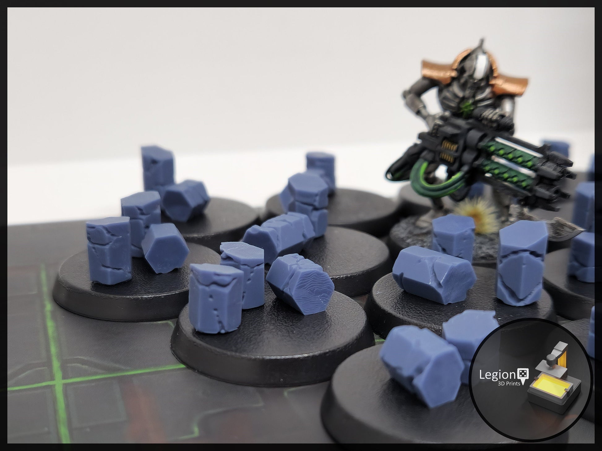 Personalize the look of your miniatures with this 3d printed pack of 48x Basalt Columns (M) for crafting bases and terrain. This pack has been updated with a larger quantity of columns and printed on our new double sided frames - photos will be updated soon to show them off :)