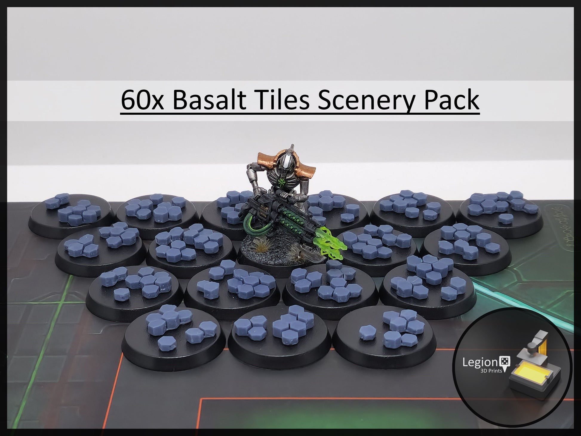 Customise your bases and terrain with these 3D printed Basalt Tiles - printed on a single double-sided frame for easy painting!