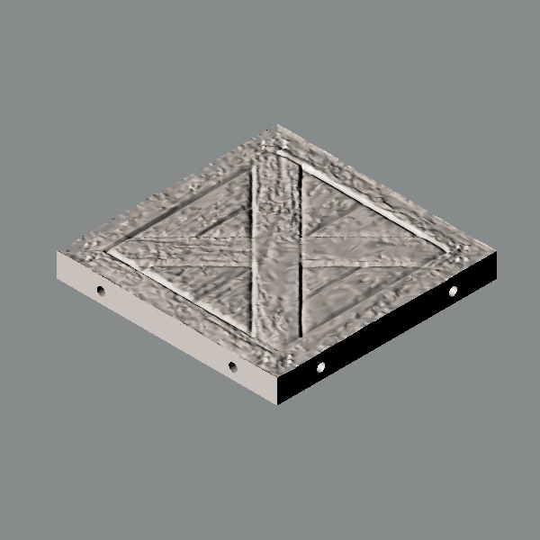 Wooden floor tile - size, 50mm x 50mm x 5mm thick when printed. Can be joined with other Moonhopper resin tiles of the same size. Each side has two 2mm diameter holes centrally placed, 2mm deep spaced at 30mm (15mm each from centre, 10mm from edge).