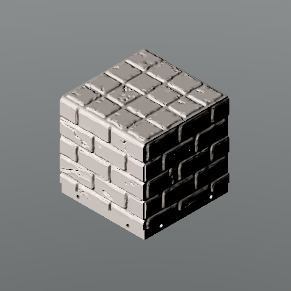 Castle floor and wall storey - size, 50mm x 50mm x 50mm cubed when printed. Can be joined with other Moonhopper resin tiles sized 50mm x 50mm x 5mm at the base. The base has two 2mm diameter holes centrally placed, 2mm deep spaced at 30mm (15mm each from centre, 10mm from edge).