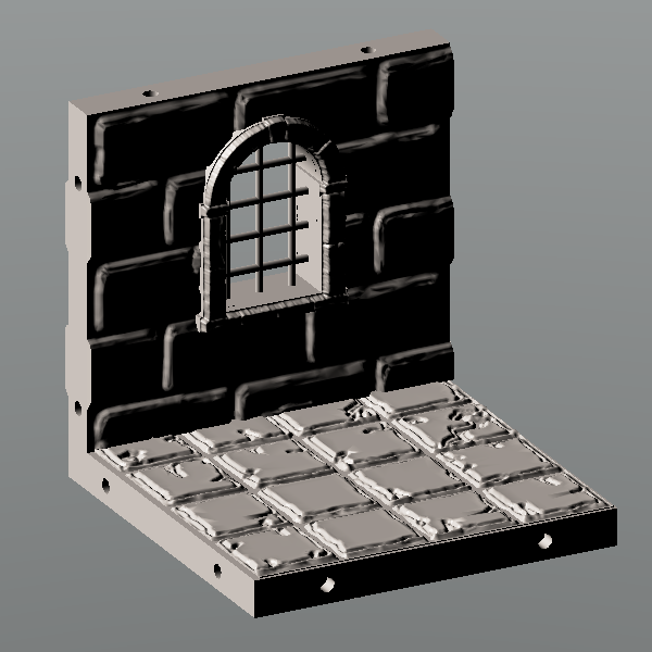Bog standard Castle window with bars inset. The style is reminiscent of early maniac. Size, 45mm x 50mm x 5mm cubed when printed. Can be joined with Moonhopper Castle range resin tiles, sized 50mm x 50mm x 50mm.