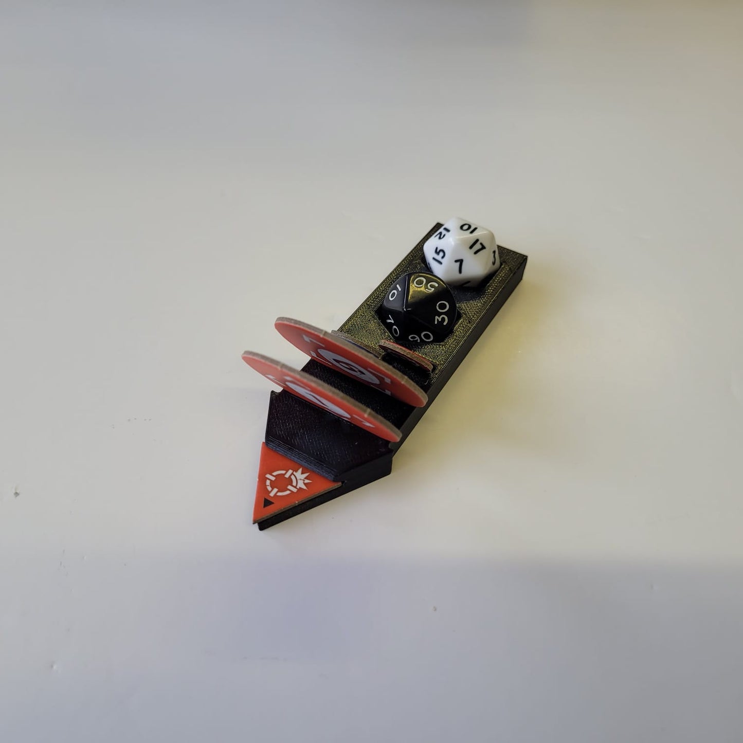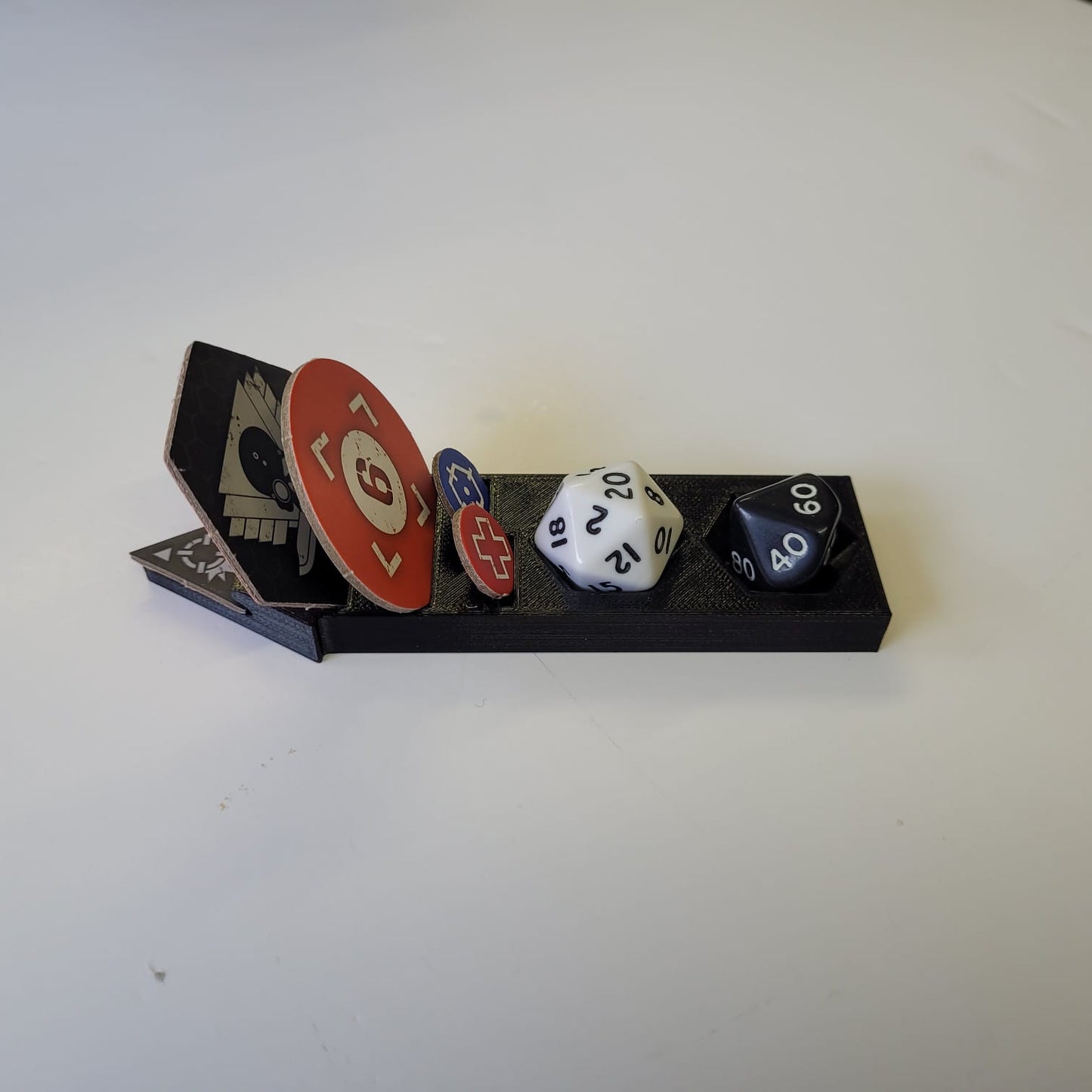• Space for 2 dice + 4 tokens (2 large, 2 small).