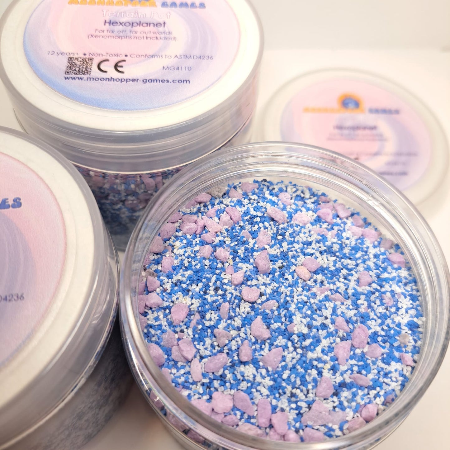 Our terrain pots are a nice way to add custom grit and debris to scenery and dioramas. Specially formulated to produce the best results at a reasonable price. A little of this stuff goes a long way.