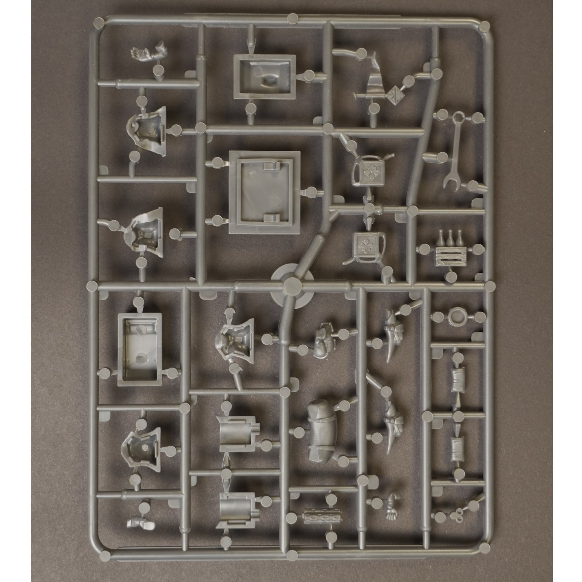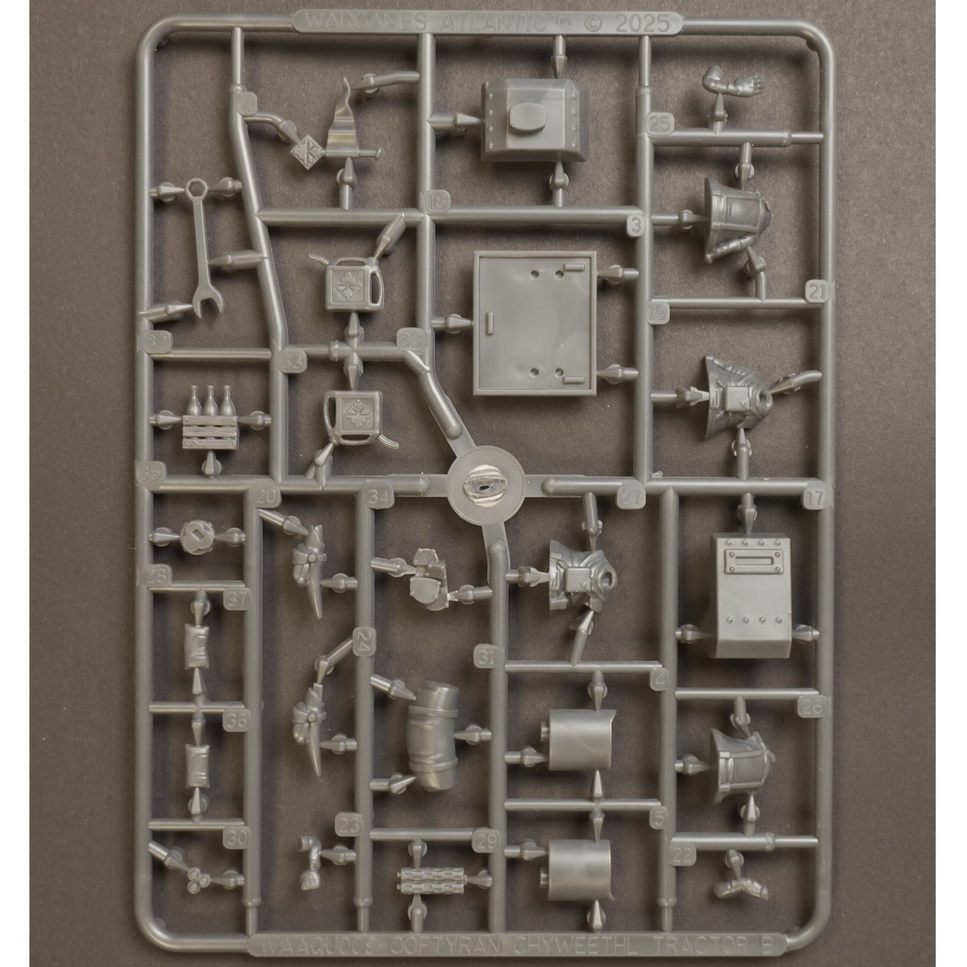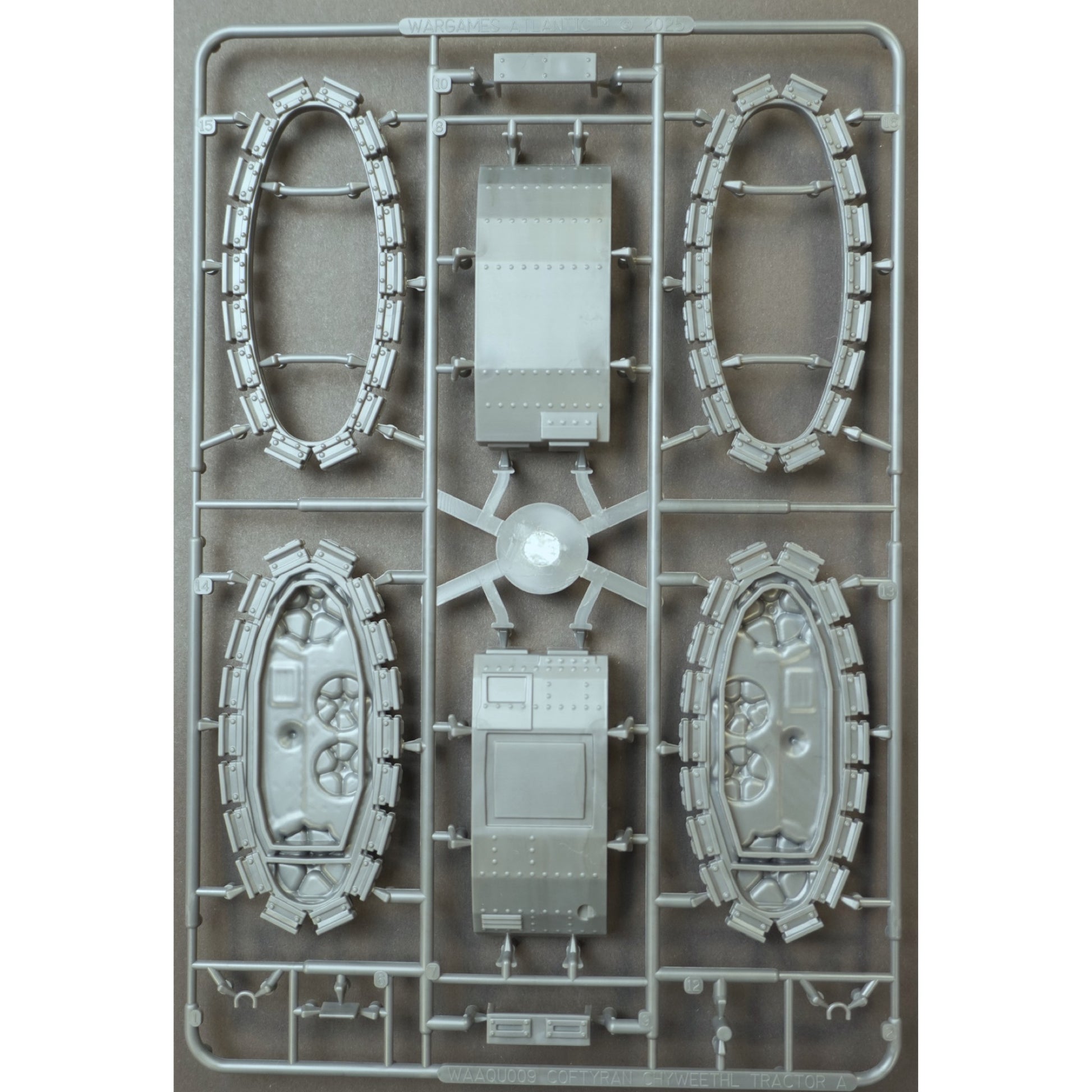 This highly detailed hard plastic kit includes two full frames packed with finely sculpted components, allowing you to assemble one Chyweethl armored tractor complete with its dedicated crew. Every rivet, gear, and segment of chain has been meticulously designed to capture the rugged character of this iconic Coftyran war machine - perfect for collectors, painters, and commanders of This Quar’s War alike.