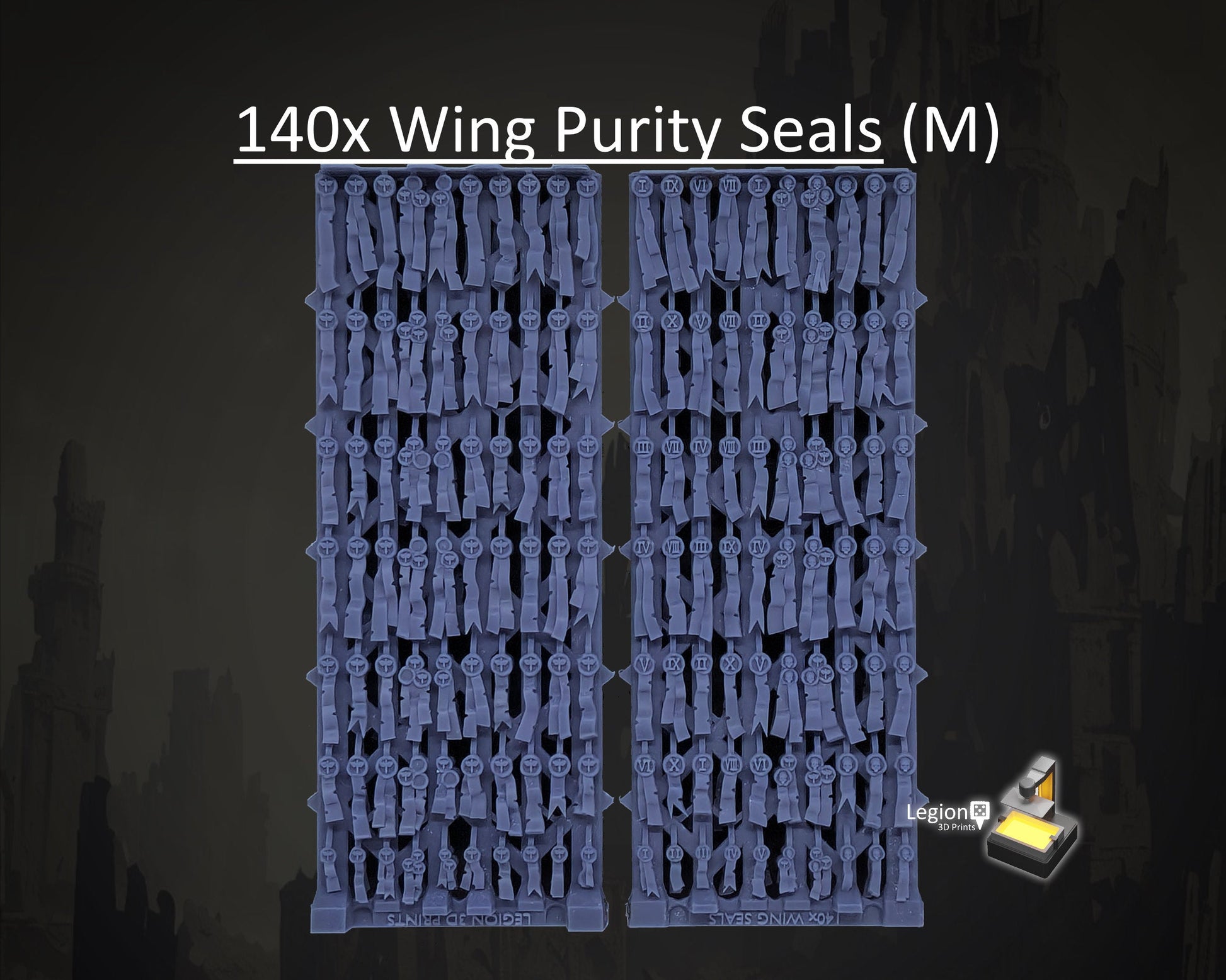 Personalize the look of your models with this 3d printed pack of Wing Themed miniature seals!